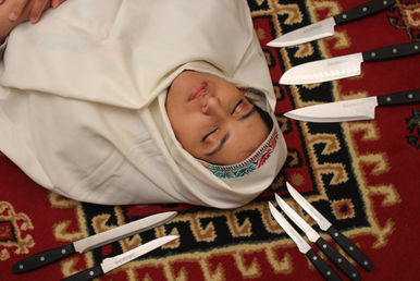 Inspired by Shirin Neshat, I utilized the technique of juxtaposition to represent the relationship between Muslims and the idea of violence. The media, both in the news and in the entertainment industry, oftentimes characterizes Muslims as violent and aggressive. This is a false stereotype. Around the world, Muslims face countless prejudices and injustices for their identity, as represented by the knives. The placement of the knives is essential to the idea of the photograph, as they symbolize the violence that is directed towards Muslims.